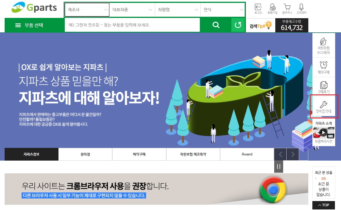 Gparts의 다른 장점 한 가지는 바로 지파츠 쇼핑몰에서 구입한 부품을 표준 공임을 받고 장착해 주는 장착점이 있다는 점입니다. (단, 표준 공임 적용은 Gparts 쇼핑몰에서 구입한 부품에만 해당합니다.)