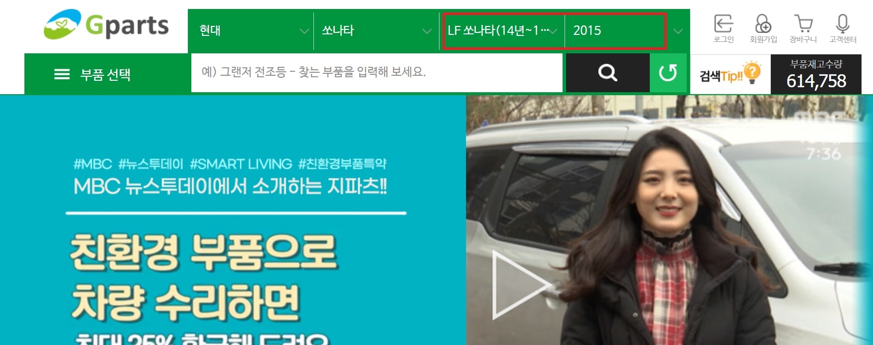 ※ 예를 들어 Gparts에서 현대 LF 쏘나타 2015년식 헤드라이트(헤드램프) 부품을 검색해 보겠습니다.